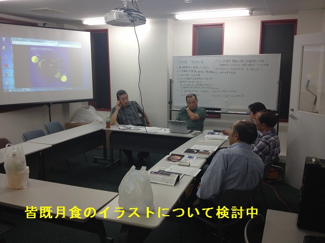 9月13日 9月例会(協会事務所にて) ・夏の観望会の結果とふりかえり ・太良観測所整備の進捗と今後の課題 ・太陽光発電その後 ・西コミの太陽観測装置整備状況 ・学校教育の取り組みと試行 ・皆既月食の取り組み、その他観望会 ・総会・理事会の見通し 出席者;近藤、鶴田、永渕、園田、松林、副島、松尾 7名 写真 1、2、3、4、5 |