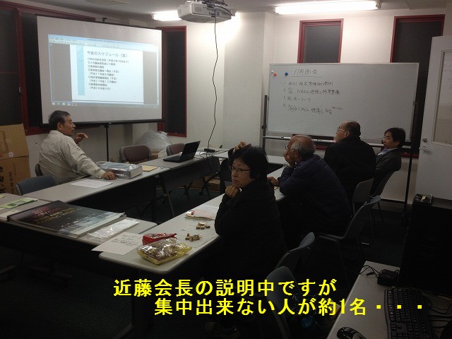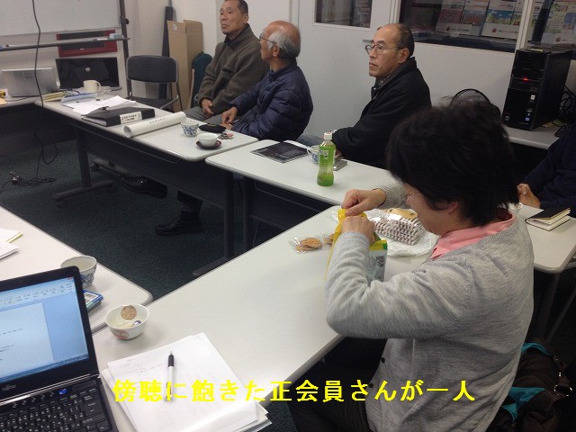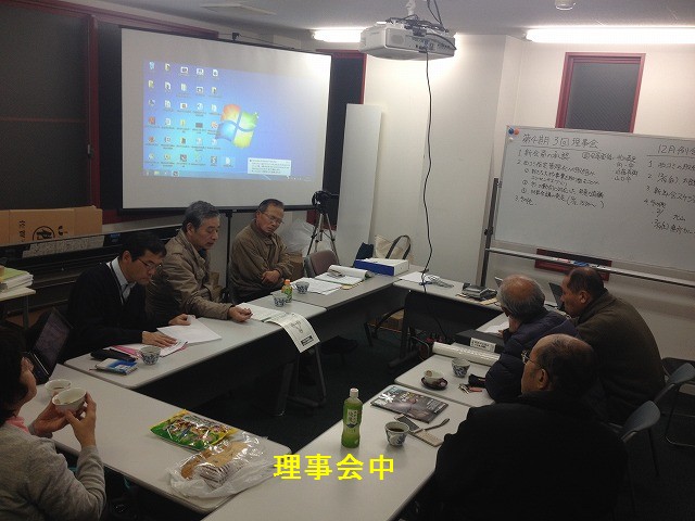 12月12日 第4期4回目理事会(協会事務所にて) 理事会議題 1..入会申込者の承認 2.西コミ指定管理の取り組み 3.その他 出席理事、近藤、永渕、松林、副島、松尾(5/9名) 出席監事:小柳(1/3名) 正会員傍聴:椛島、園田、土井 写真 1、2、3、4 |