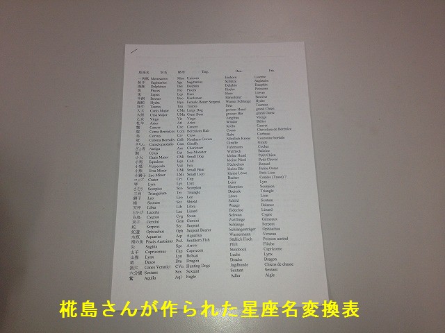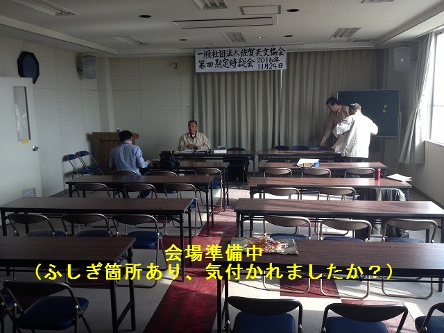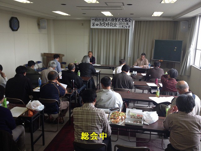 11月14日 11月例会(協会事務所にて) 例会議題 ・西コミの動向に関して ・太良観測所整備に関して ・総会いろいろ ・観望会依頼に関して ・ほか 出席理事:近藤、椛島、園田、松林、土井、大石、松尾(7名) 写真 1、2、3、4、5、6 |