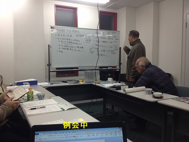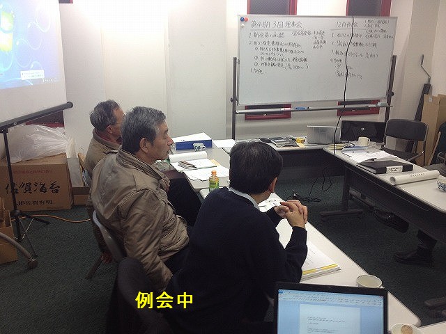 10月31日 第4期3回目理事会(協会事務所にて) 理事会議題 ・第4期総会に向けた総会資料の検討 第3期事業報告書(案)、第4期事業計画書(案)、第3期収支報告書(案)、第4期収支予算書(案)確認 ・総会準備 案内状、式次第、出欠・委任状の確認 会員名簿の確認 入会申込所書、入会金、会費の案内、振込用紙 印刷、発送作業日程確認 ・佐賀市への委託見積書、単発事業見積書の検討 出席理事:近藤、永渕、副島、松林、内川、松尾(6名) 出席監事:なし 正会員:太田 写真 1、2 |