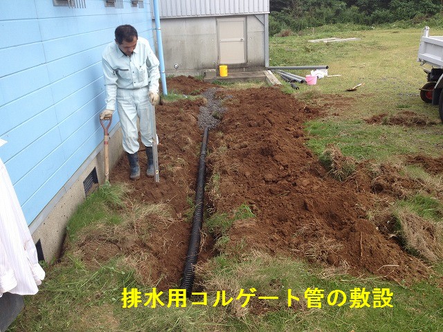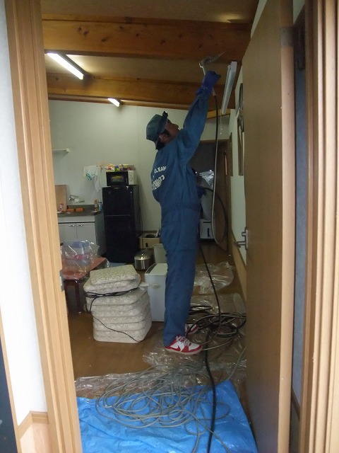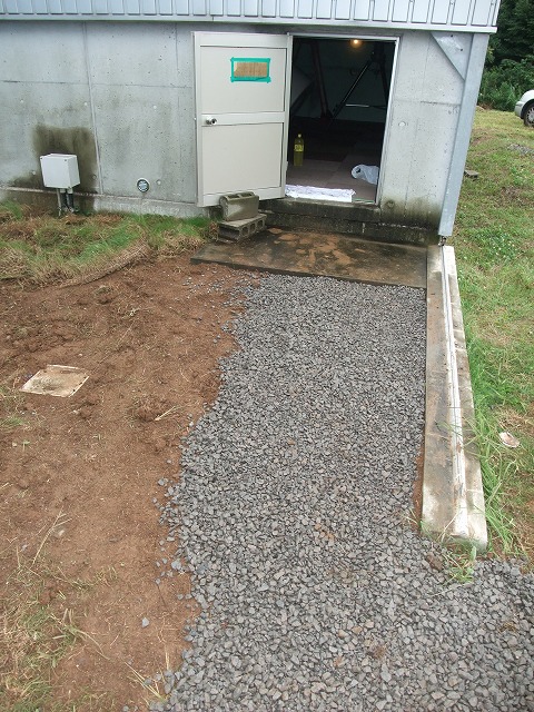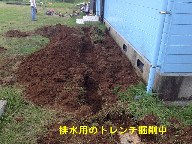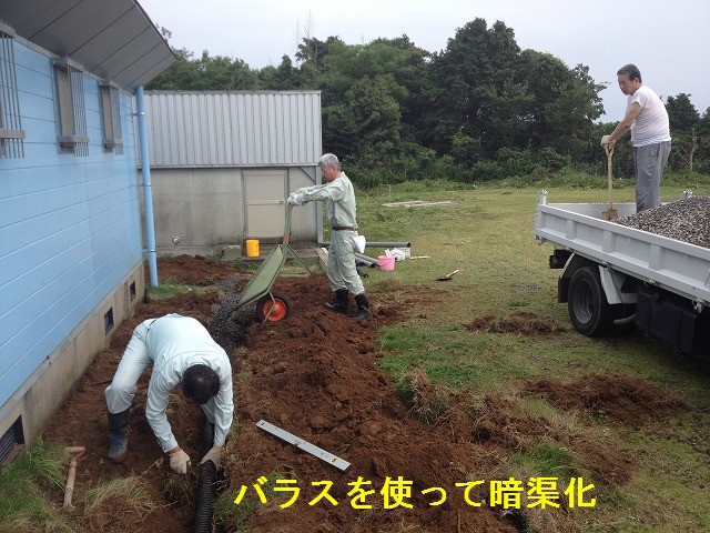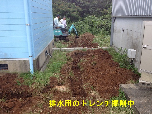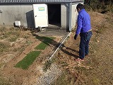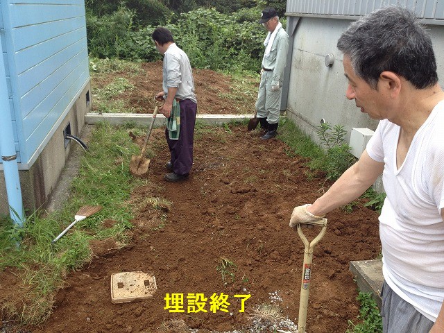 7月14日 太良観測所整備 本日、太良観測所のシロアリ駆除の作業が完了しました。午前中は小雨、昼ごろには本降りという天気予報より悪い中、江崎しろありの職員5名ほどで作業が進められました。床下の作業はよくわかりませんが、屋内は柱にドリルで穴をあけて薬剤を注入し、白いセメントで封をする形です。業者の見立ては、それほど深刻な状況ではない とのことでした。 今日は、八谷さんと永渕さんと私の3名が出かけたのですが、シロアリ駆除は壁をはがすような作業は無いので、われわれ3名は並行して先日の排水作業の続きをしました。と言っても11時頃から14時頃までは本格的雨のため中断し、夕方5時までやりましたが、大方は八谷さんがユンボの排土板で裏手の地面を下げる作業でした。台所の北側にふたつの溜桝が見つかり雨水や浄化槽の排水等の配管の具合がわかってきました。 当初プランと異なり、裏手は浄化槽から東側に建物に沿って排水管をいれ、その中央から北に水を落とし込む排水管を伸ばす。あと一本は、建物西側に北に向かう排水管を入れる、という予定です。若干の排土作業と、上記配管作業が残っています。 参加者;近藤、永渕、八谷 シロアリ駆除業者5名 報告・写真:近藤 写真 1、2、3 、4 |