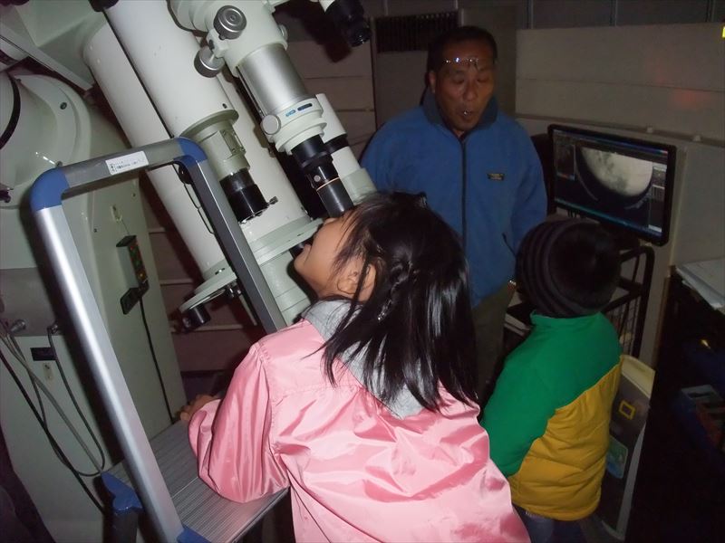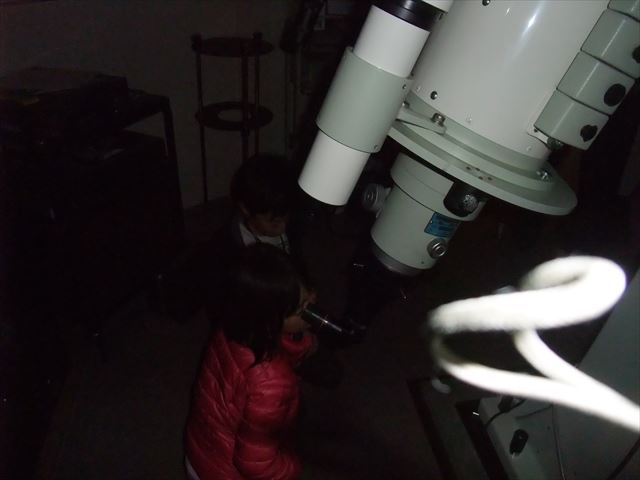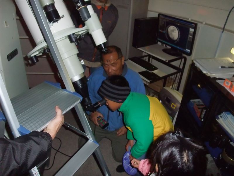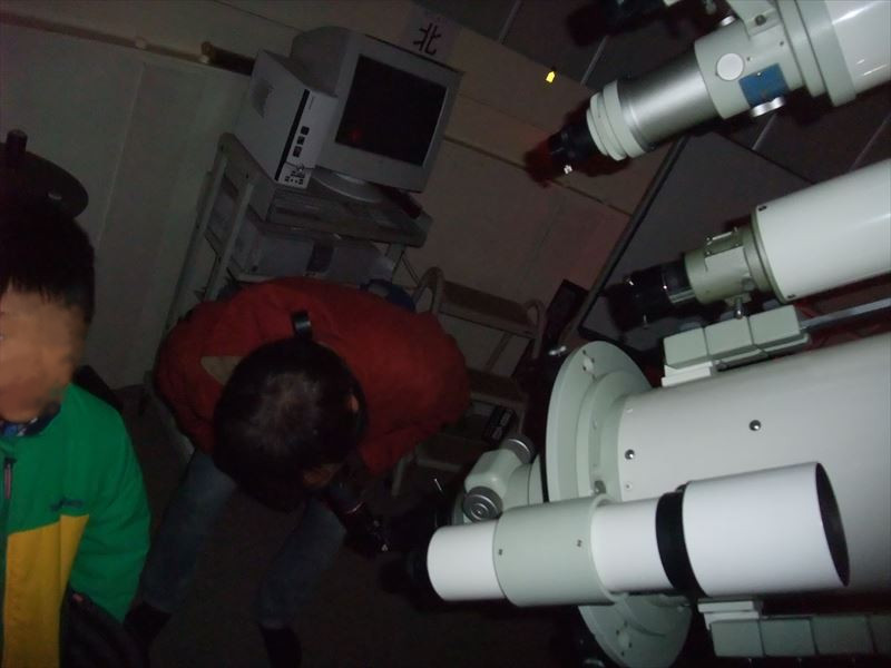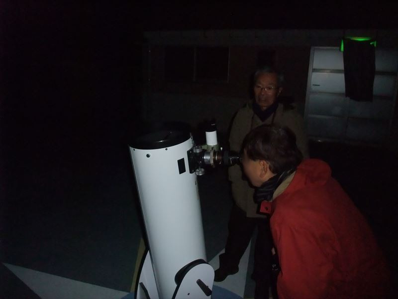 11月12日 黒髪少年自然の家 観望会 19:00~20:30 観測前、古川による天文シュミレータMITAKAを使った模擬宇宙旅行で星空案内。ステラナビゲーターで星座の説明を30分程度行った後、月の模型を使った月の満ち欠け、月食、日食の起き方の説明を10分程度行った。 外では前田による星座の説明を行った。観測は45分ほど 78㎜屈折、280㎜シュミカセ、10㎜双眼鏡等で月、おうし座スバル、白鳥座アルビレオ、こと座ベガなどを見せた。 いつもの事ですが子ども達も楽しんでいましたが、それ以上に大人が楽しまれていました。 最後に天体写真を子供たち全員に配りました。 観望対象 月、M45、アルビレオ、ベガ 参加人数 約60人 担当 古川、前田 写真 1、2、3 |