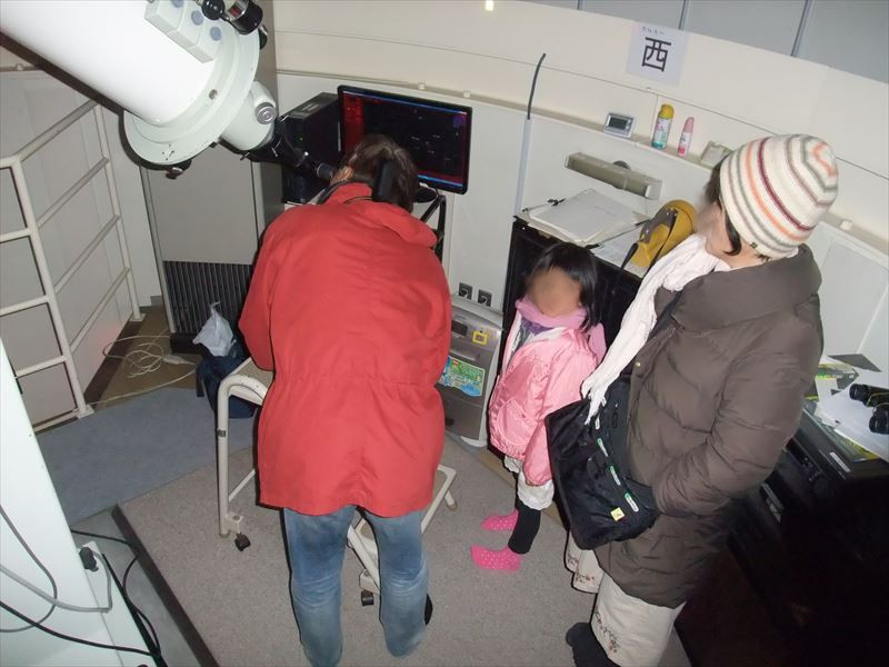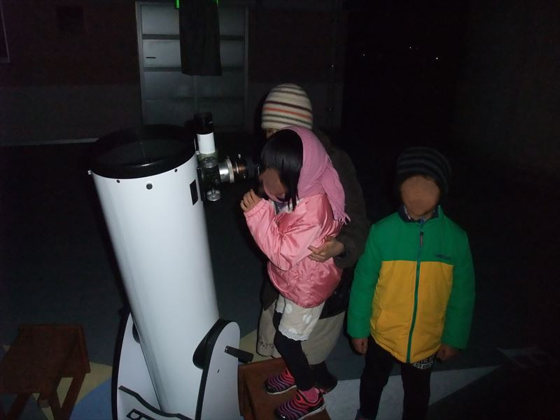 | 3月12日(土) 西与賀コミュニティセンター(佐賀市天文台) 比較的天気は良かったのですが、薄雲が流れる中で隙間を見つけての観望会でした。報告者が準備が遅れて19:30分ごろ着くと屋上広場では20名近くが来られていて、何やらいつもと違う始まりです。ドームに登ると先に到着していた松林、園田氏の両会員が20cm屈折のセットアップ中でした。今日の人出はボーイスカウト佐賀1団カブ隊の皆さんでした。最初に月齢3位の月を数名ずつドームに入ってもらい月クレーターの様子を見てもらいました。屋上広場では近藤会長が星座やボーイスカウトらしく北極星の見つけ方を説明しました。あと、ドームでは木星やM42を観望してもらい、25cmドブソでM45もきれいにみる事ができました。21時頃にカブ隊の皆さんからお礼の挨拶をいただきました。近藤会長から4月開始の星空学習館のパンフレットを配布して少し宣伝をさせてもらいました。雲が多く星が見える範囲は少なかった割にはシーイングが良くて高倍率で木星を安定してみることができました。スターダストの古川会員もひょっこり現れて手伝ってもらいました。終了時のドーム内温度が7.8度Cでした。 観望対象:月、木星、M42、M45 来訪者 21名(うち子供11名) 担当者:松林、松尾/近藤、園田、古川 写真・報告:松尾 写真 1、2、3、4、5 |