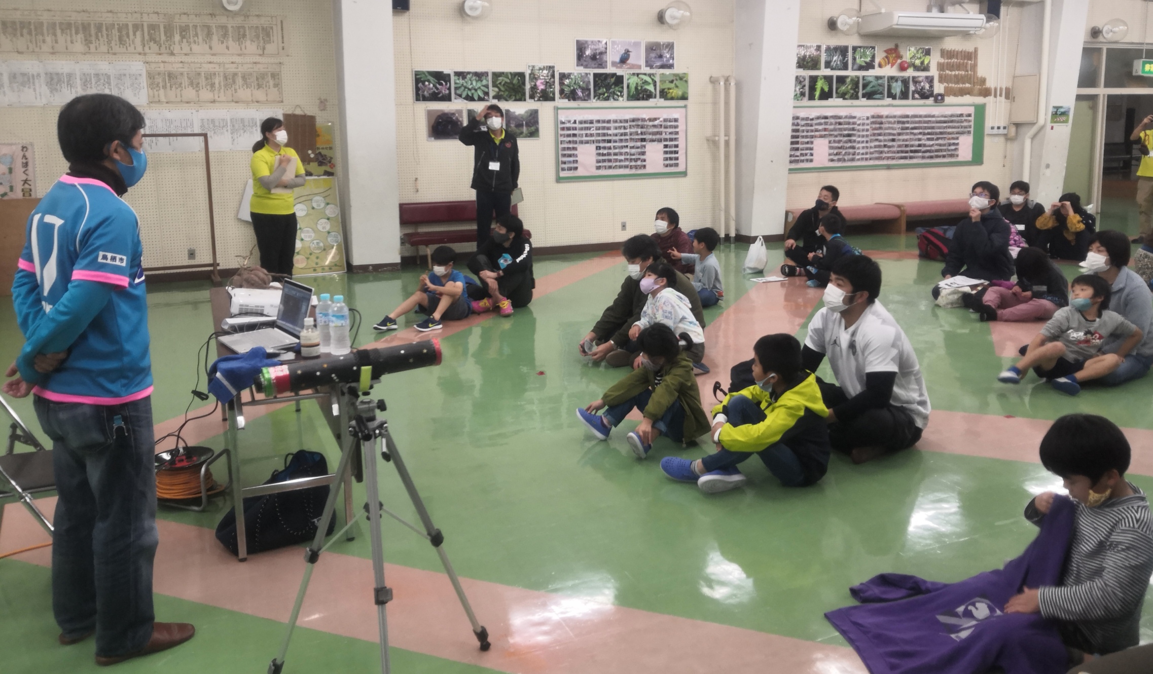 11月7日 秋の収穫祭(黒髪少年自然の家) 19:00~20:30 晴れ間が見れたものの、ほとんど曇りで初めは雨もぱらついてました。福田さんが90分間お話を行いました。 解散後の移動の時に、火星が見えていたため外に出していた望遠鏡で火星を見てもらいました。雲を通してでしたが、見ることができました。 参加者:大人20人 子ども30人 担当者:古川、福田 写真・報告:古川 写真1,写真2 |