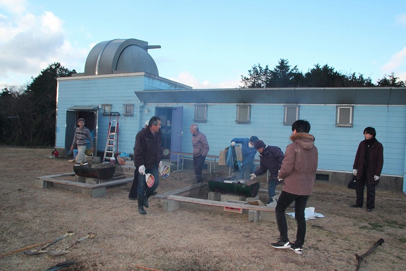 1月12日 新年会、1月例会&祝賀・慰労会(太良観測所) 13:30~17:00 日没まで、観測所の整備。主に、太陽光発電下の防草シートの張替え作業と芝生の整備を行った。 日が沈んで18時からは恒例の新年会で、佐賀牛や牡蠣に舌鼓を打った。今年は、椛島さんが新天体捜索を引退されることの慰労会と近藤さんの小惑星命名のお祝いを兼ねた。 新年会参加者:椛島、副島さん家族3人、近藤、早水、松林、澁谷、古川、福田、大田、青柳さん家族3人、草野さん家族4人、八谷、園田、水田、岡山、朝倉、川野、TOMITA2人、 中村ヤさん家族3人、福岡城東中の先生2人 整備のみ参加:松尾、山口夫妻 報告・写真 早水 写真1,写真2 |