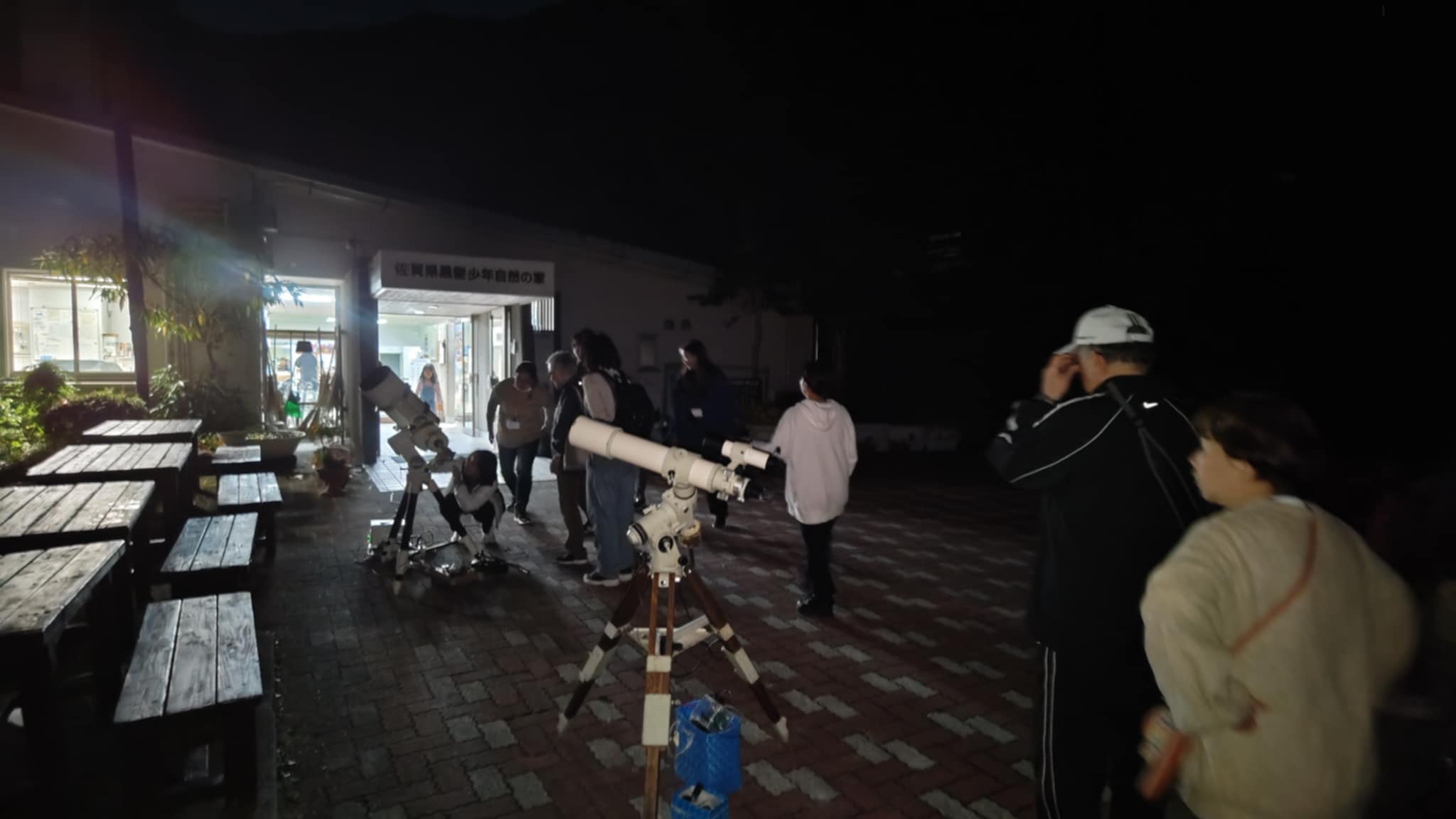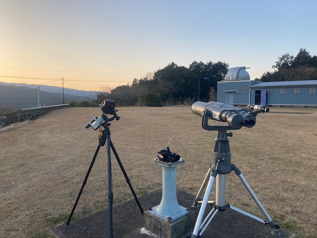 11月16日(一財)佐賀県母子寡婦福祉連合会(黒髪山少年自然の家) 18:00~19:00 観測天体 土星、 金星、アルビレオ、 月、すばる(m45) 観測会は終始天気が良くて星空観測をゆっくり出来ました 参加者さんは望遠鏡で星を観望したり スマフォで天体撮影(土星、月)をしたりでワイワイ楽しまれてましたよ 参加者:親子20名 担当:古川、福田 写真・報告:古川 写真1 |
