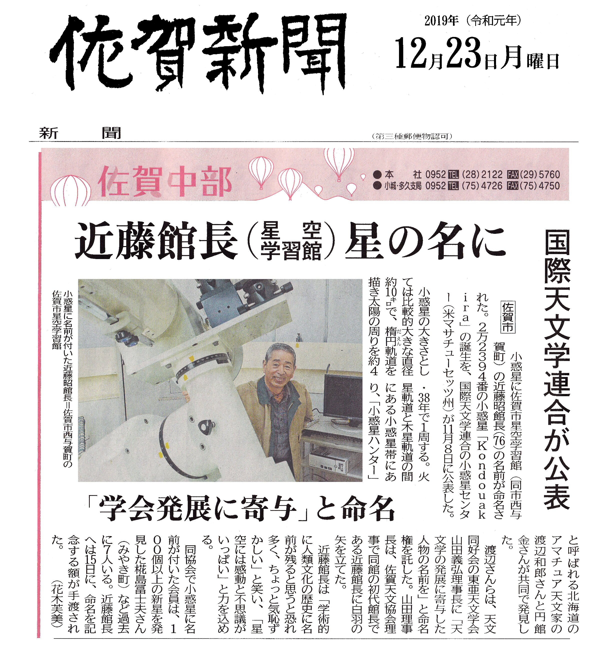 ★佐賀県関係や佐賀天文協会会員内で名前のついた小惑星