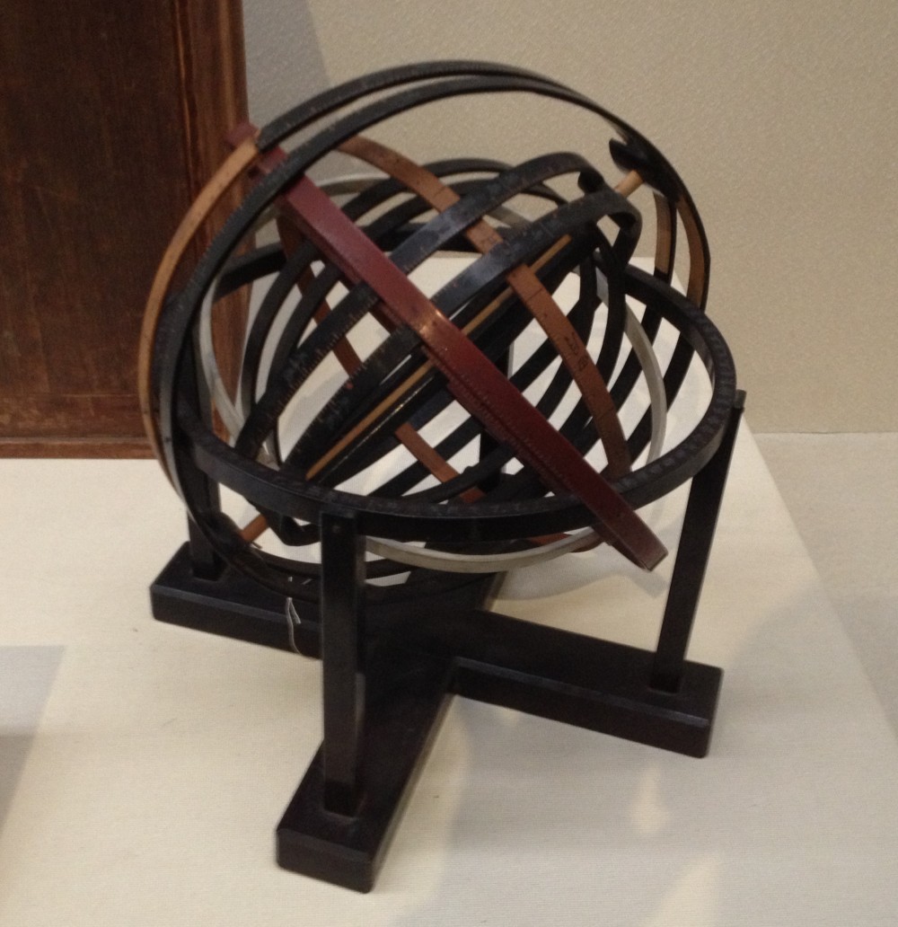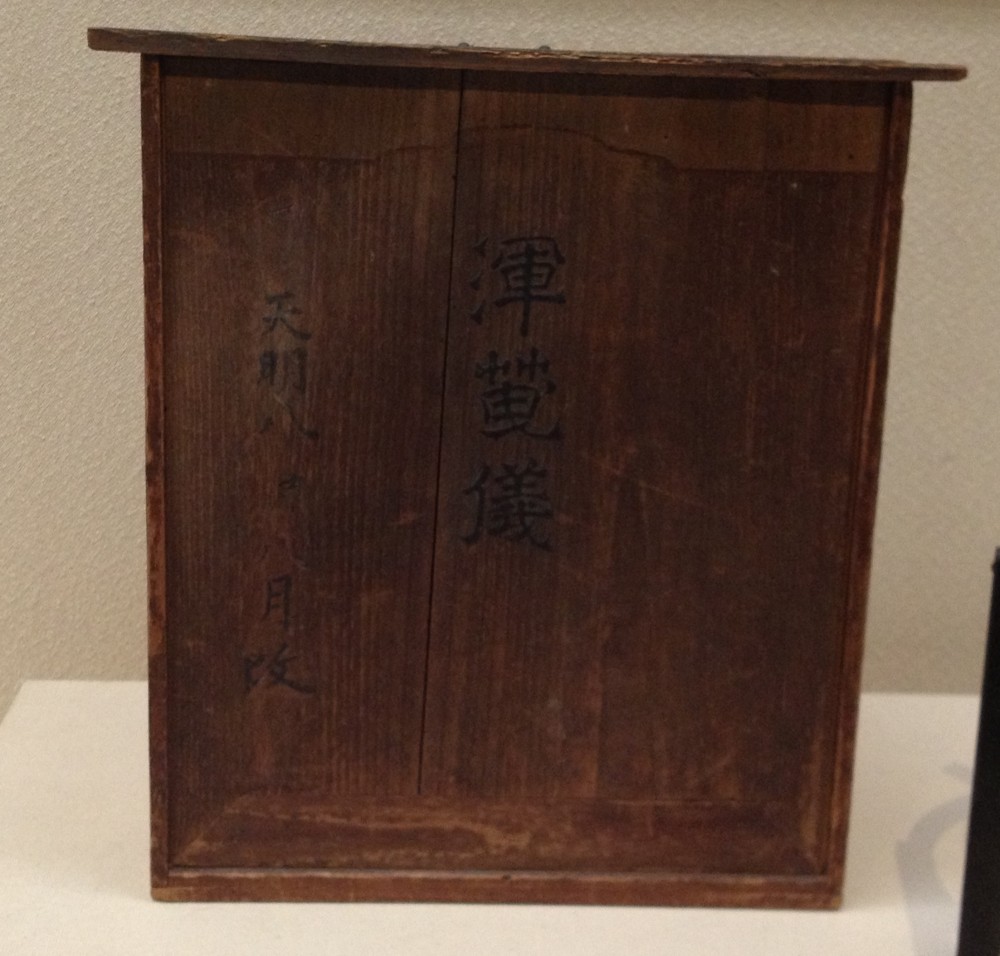 多久市郷土資料館 蔵 1699年多久家4代邑主茂文が建てた学校である東原庠舎(とうげんしょうしゃ)の教材として使用されていた。 経緯度の仕様は江戸(東京)基準。箱書きには「渾天儀 天明八申八月改」とあり、製作年代は1705年〜1769年と推定される。 ※佐賀県立博物館・美術館「佐賀藩の天文資料」展示会の説明文より引用